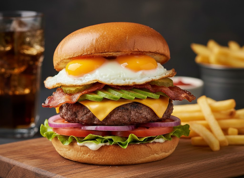 Avocado, Onion, Picket, Cheese, Bacon, Lettuce And Tomatoes, Choice of Eggs