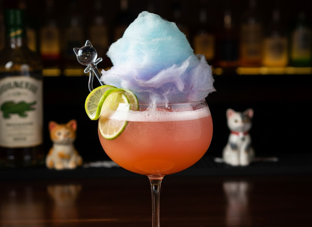 Mango Croc, Watermelon Puree, Fresh Lime, Splash of Sour Poured Over Delicious Cotton Candy