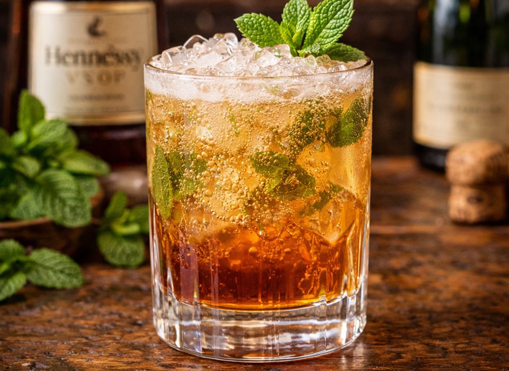 Hennesy Vsop, Fresh Mint, Simple Syrup, Topped with Champagne Brut