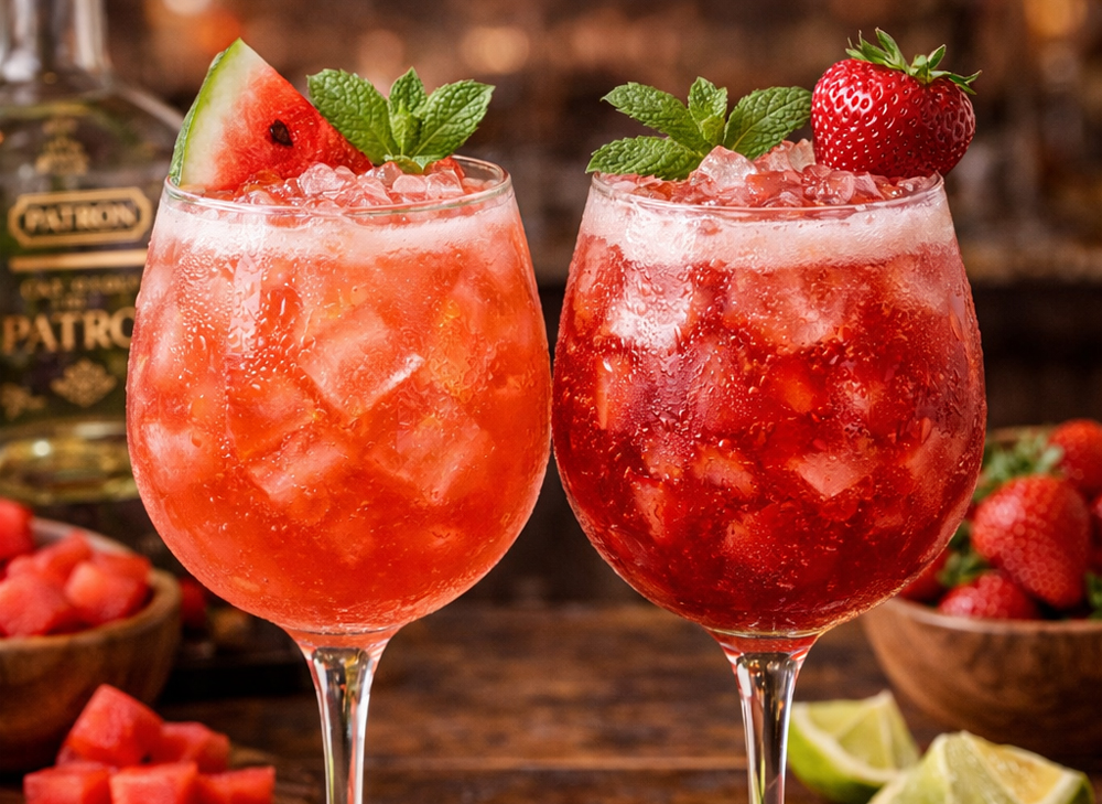 Patron, Fresh Lime Juice, Tripple Sec Top Sour Mix With Your Choice of Watermelon or Strawberry Puree
