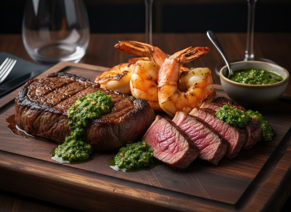 Steak, Jumbo Shrimp, With Chimichurri Sauces