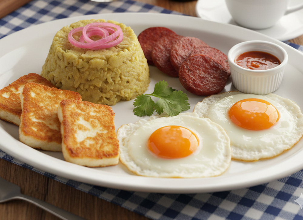 Plantain, Eggs, Salamin, Fried Cheese